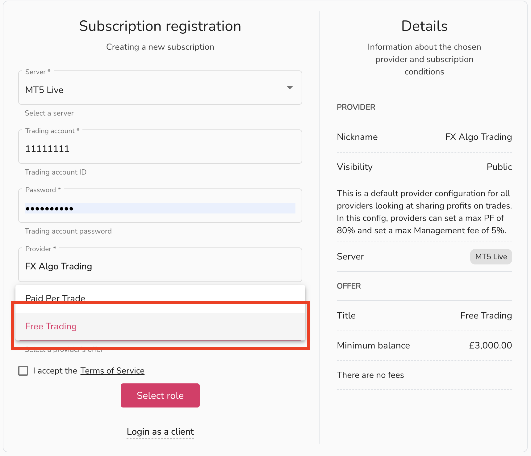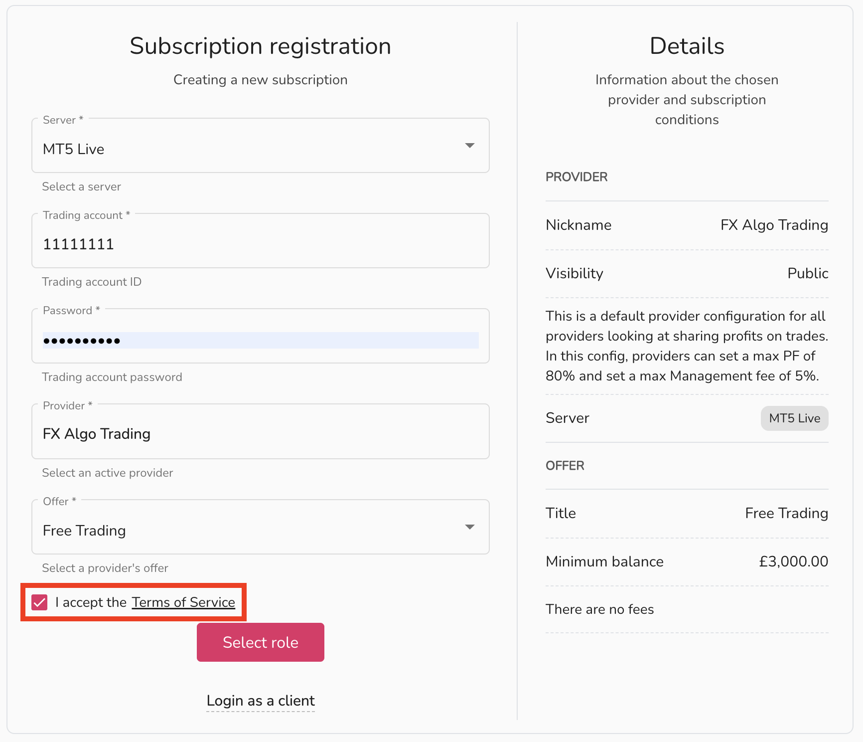 11. Check the, “I accept the Terms of Service” and finally click, “Select Role”
